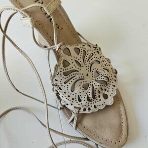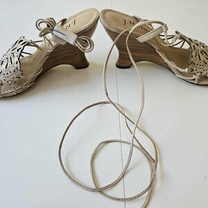 J. Renee Lace Up Wedge Sandles Beige Size 9 1/2 M