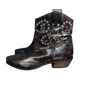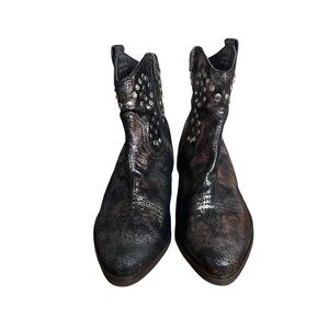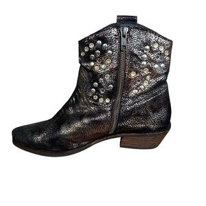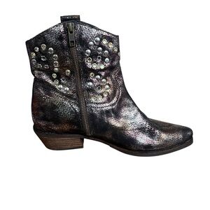 J.Renee leather studded gemstone ankle booties brown copper iridescent festival cowgirl western boots