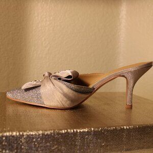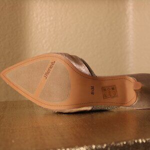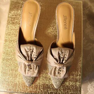 A memory foam-cushioned footbed provides easy comfort in a stylish pointy-toe mule set on a tapered kitten heel.
