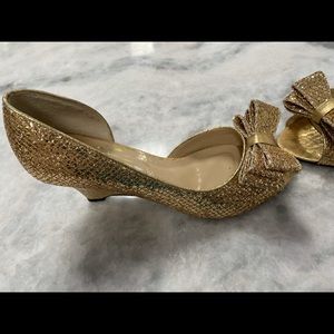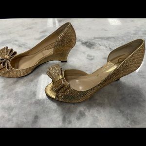 These are stunning formal wedge sandals with a ton of glitter and a very cute though near the Peep Toe. Excellent condition, and extremely cute