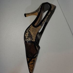 Elegant slingback heels with a unique pattern. Perfect for adding flair to any outfit. Comfortable and stylish.