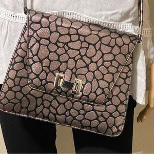 J. Renee Reptile Print Crossbody Purse Bronze and Black Extra Strap Included
