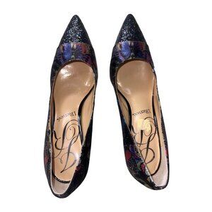 These J Renee Ryenne Y2K heels in size 8 feature a stylish butterfly screen print design. The black base is accented by blue, pink, and purple glitter on the heels and toes.