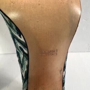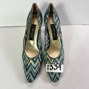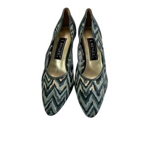 J. Renee Shoe Womens 9 M Heel Pump Blue Chevron Pattern Pointed Toe Leather Upp