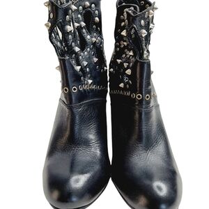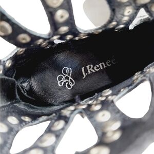 J. Renee Studded Heeled Ankle Booties Black size 7.5 Cut-Out Detail Rock & Roll