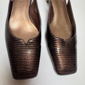 J. Renee Women's Copper Snakeskin Texture Sling Back Pump Square Toe Casual 9M