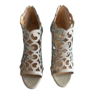 J Renee Women's Mcwayfalls Caged Sandal Shootie Silver Satin Rhinestones Size 6M