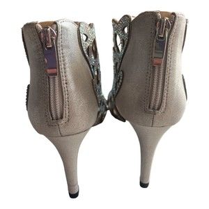 J Renee Women's Mcwayfalls Caged Sandal Shootie Silver Satin Rhinestones