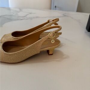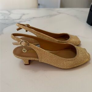 J Renee peekaboo toe gold slingback pumps. Size 6 .5