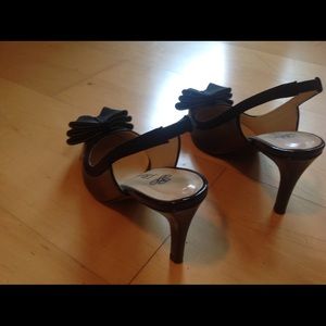 Good Morning....the shoes are black & maybe 2" heel....they are gorgeous heels!!! Have a great day....