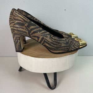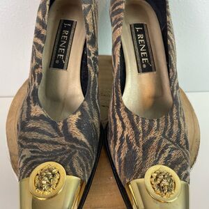 J. Renee Gold and Brown Tiger Patterned Chunky Heels Size 8M EUC