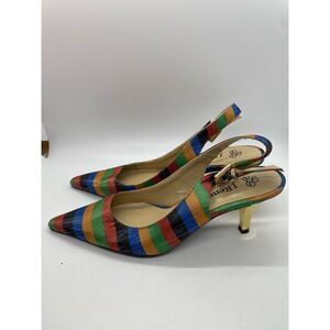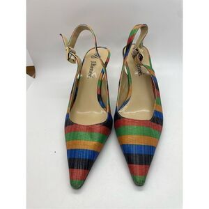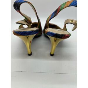 J. Renee’ Women’s Multi Striped Sling Back Gold Heel Size 6