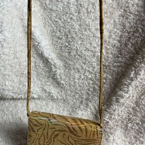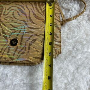 J Renée gold fabric 3D effect zebra print shoulder bag flop snap closure the inside lining has a side zipper.pre owned in good used condition some transfer marks on the inner lining see all pictures any questions please message.