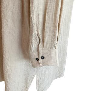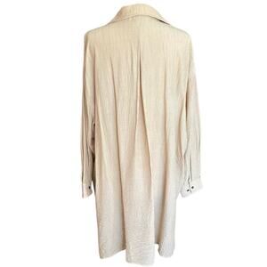 J. Roberts Tan Crinkle Popover Shirt Dress Sz Medium Minimalist Neutral Casual. Easy wear relaxed fit. Dress it up with a belt if desired. Partial button down. Button cuffs.