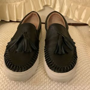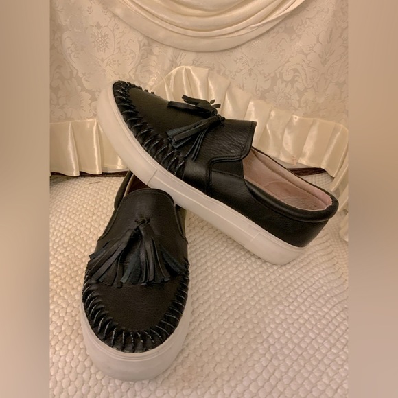 CONDITION: GREAT 👍 LEATHER TASSEL SLIP ON SNEAKERS #1719 note: all used footwear are thoroughly cleaned and sanitized