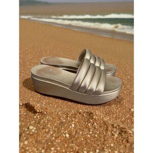 J SLIDES Gold Leather Platform Slides Sandals Size 10