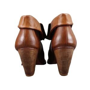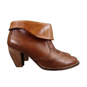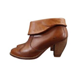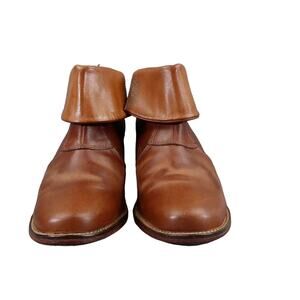 J Shoes Womens 9 Bootie Fashion Leather Fold Over Block Heel Saloon Zip Brown