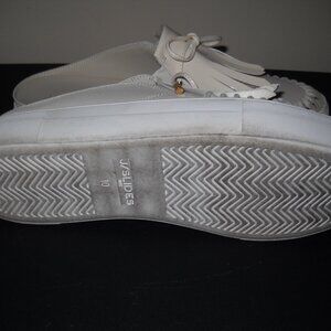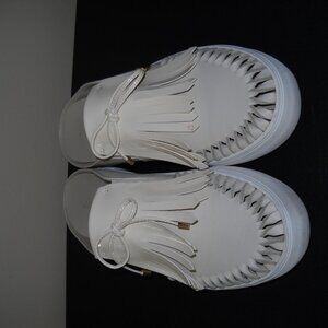 Beautiful cream color Andie leather J/Slides NYC tasseled platform leather slip on mule with rubber sole.