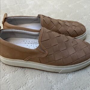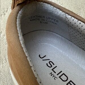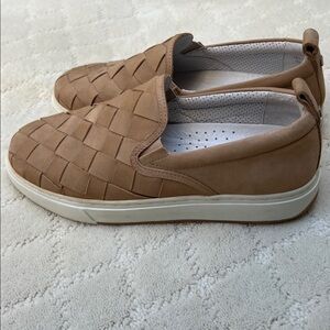 Like new, J/Slides NYC LEATHER WEAVE SAND NUBUCK SLIP ON SNEAKERS WOMEN’S size 8.5