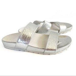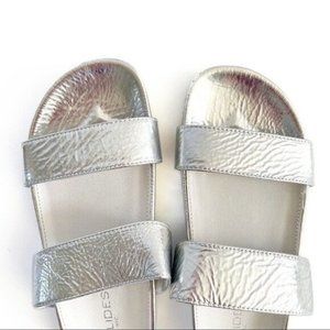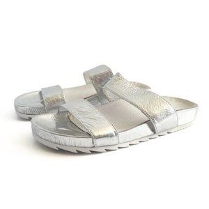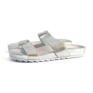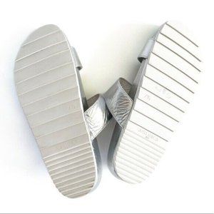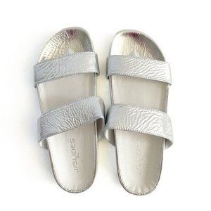 J Slides Edie Sandals Silver Leather Platform Slip On Double Strap in Size 7.5