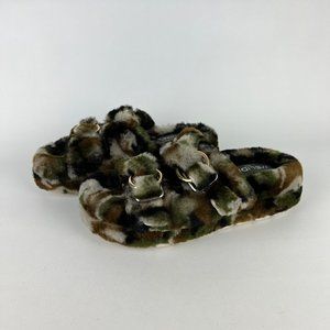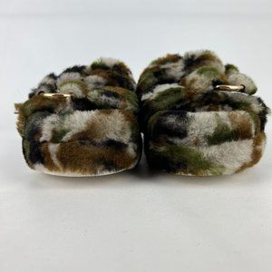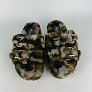 J Slides NYC Brooke Womens Genuine Shearling Platform Slippers Green Camo size 8