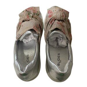 J Slides NYC Metallic Silver Floral Bow Slip On Sneakers Platform Casual Trendy