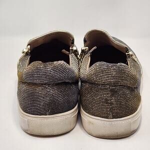 J Slides NYC Metallic Slip On Sneakers Size 9 Zipper Details Gold Silver Casual