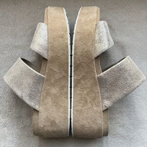 J Slides NYC Quincy Metallic Gold Brushed Suede Platform Sandals Women US 9.5 M