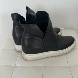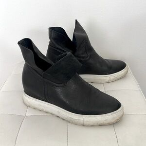 J Slides NYC Womens Size 7.5 Black Leather Hidden Wedge Sneakers