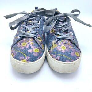 J Slides Skater Sneakers Shoes Sz 8 Floral Embroidered Fabric Ribbon Lace Up