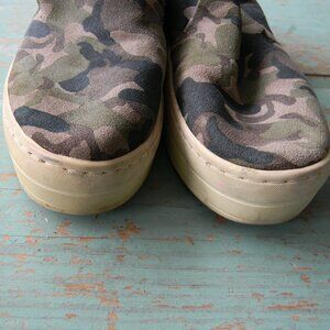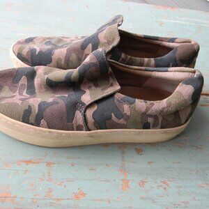 J Slides Womens Camouflage CAMO Nubuck Leather Slip On Sneakers Green SZ 7, GOOD USED CONDITION. 1.5"BOTTOM PLATFORM, COMFORT FOOTBED.