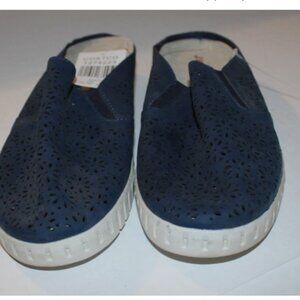 J Sport Floral Navy Blue Shoes Mules Slip On Shoes Flats Canvas 9 M Comfort