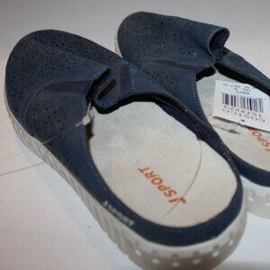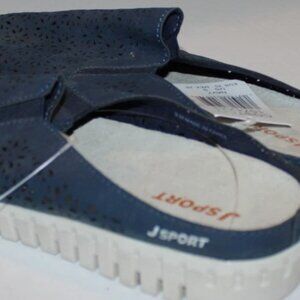 J Sport navy blue floral cutout canvas mules with rubber soles. Slip on, size 9 M, light wear, see pics.