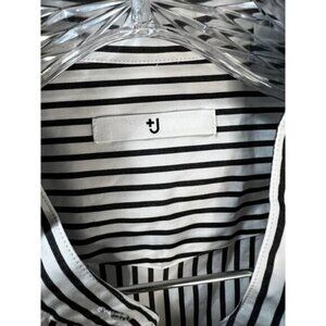 +J Striped Long-Sleeve Cotton High-Low Blouse Small