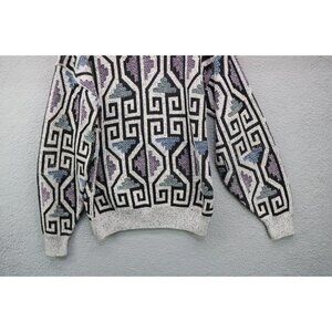 This is a Vintage J T Beckett Men's V-Neck Pullover Sweater that is a size Medium. it is 97% Cotton and 3% Polyester. Laying flat, it measures: Armpit to armpit-21.5" and the Length is 26". It is a heavy sweater. It does have a snag on one sleeve, but other than that, it is in excellent condition.