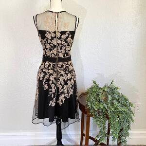 J. TAYLOR ~ Sheer Black Dress with Metallic Rose Gold Embroidery ~ Size 10