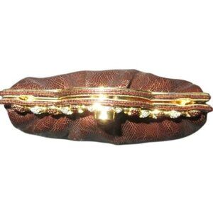 J. TIRAS Metallic Copper Snakeskin Embossed Leather Crossbody Jeweled Clutch bag