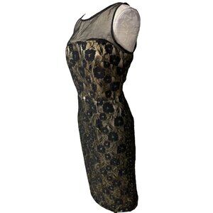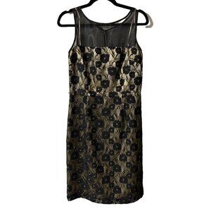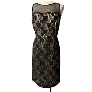 J Taylor Dress Black Gold 8 Lace Holiday Party Event Sheath Cruise Date Wedding