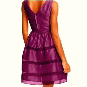 J Taylor Plum Sheer Stripped Overlay Party Dress