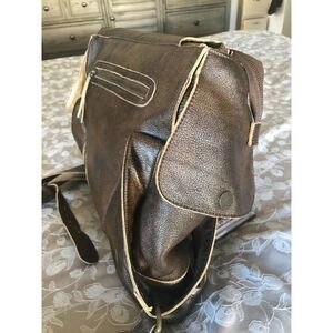 J Tote Chocolate Leather Messenger Tote. Lots of pockets in this 16x16 satchel. Cleaned & conditioned, exceptionally well made, full grain leather. Broken in, but no scuffs or signs of wear. All the many zippers & snaps are in perfect working order, the lining is very clean. Zippered pockets galore, each with a fringed pull. Padded shoulder strap for comfort. Masculine enough for a man.I