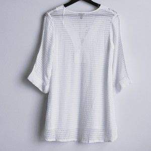 J. VALDI V-Neck Lace Up Tunic White Swim XS X-small Sheer Stripe New with Tag