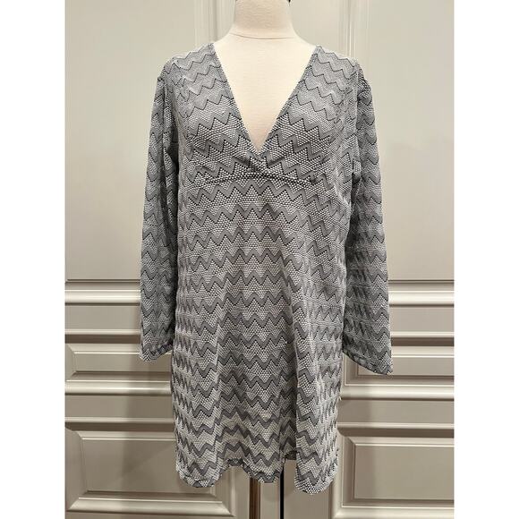 J Valdi Chevron Beach Pool Cover up Black White Mesh Size Medium