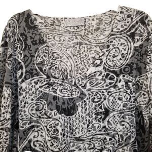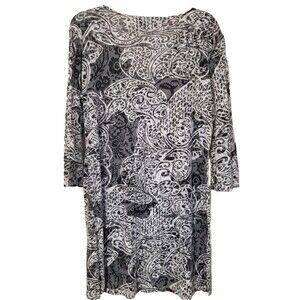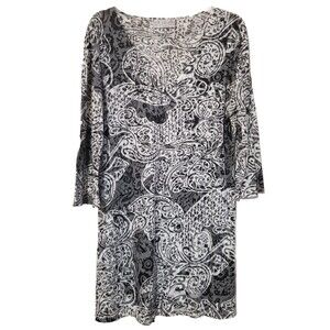 J Valdi Cover Up Womens Black White Printed Lace Up Swimsuit Tunic S/Med