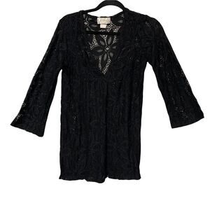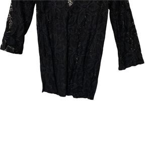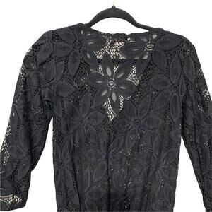 J Valdi Daisy Floral Lace Flower Deep V-Neck Black Swimwear Cover Up Small