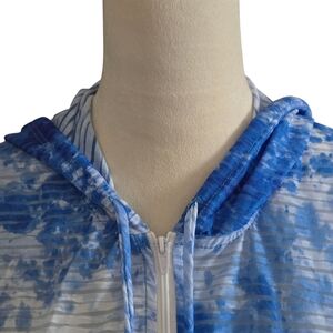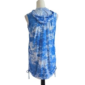 J Valdi Sleeveless Hooded Swim Cover Up Blue & White Full Zip Women size S