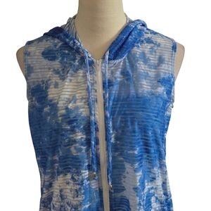 J Valdi Sleeveless Blue & White Hooded Swim Cover-Up Size S Zip Front