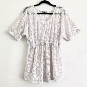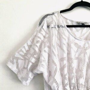 J. Valdi Swim Cover Up M White Knit Geometric Beach Pool Vacation See Through