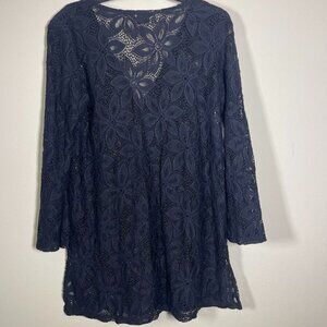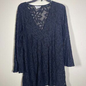 J. Valdi Swimsuit Cover Up Black Embroidered Lace Floral Bohemian!