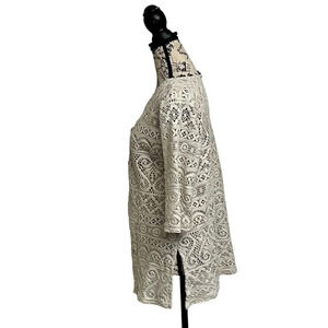 J Valdi White Crochet 90s Vintage Beach Coverup Pullover Mini Dress Sheer Tunic