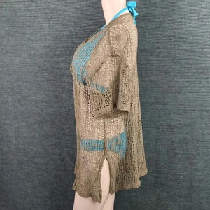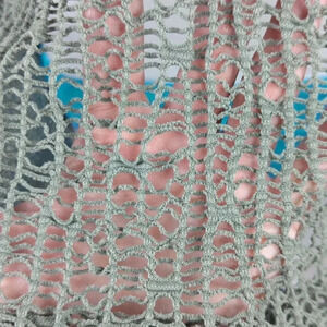 This is a beautiful bathing suit cover-up... it is a loosely crocheted or woven material that looks like chenille threads.